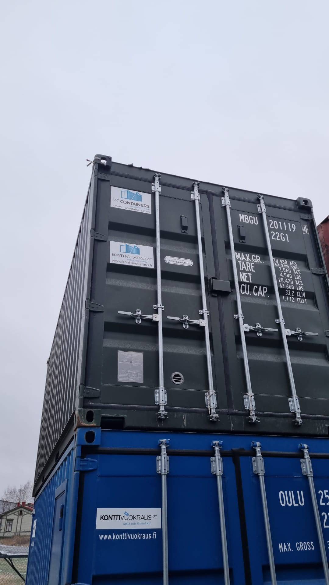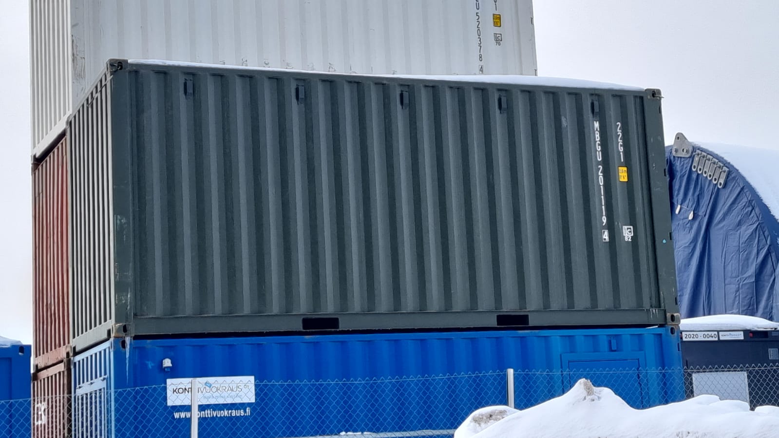 Katossa valo ja ulkosävy vihertävä RAL 6007. Kontti on vuokrakäytön jäljiltä siistissä kunnossa ja valmis nyt uusiin haasteisiin.