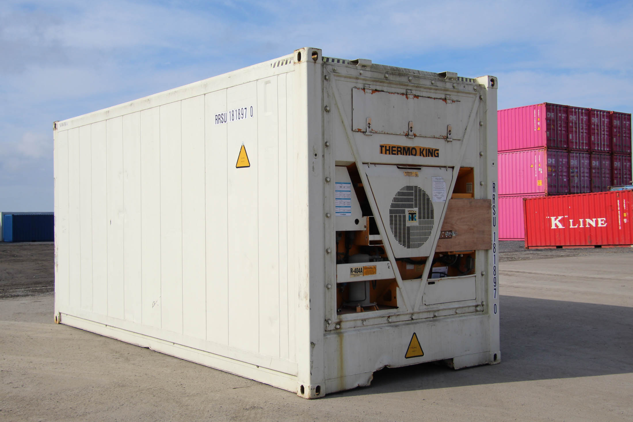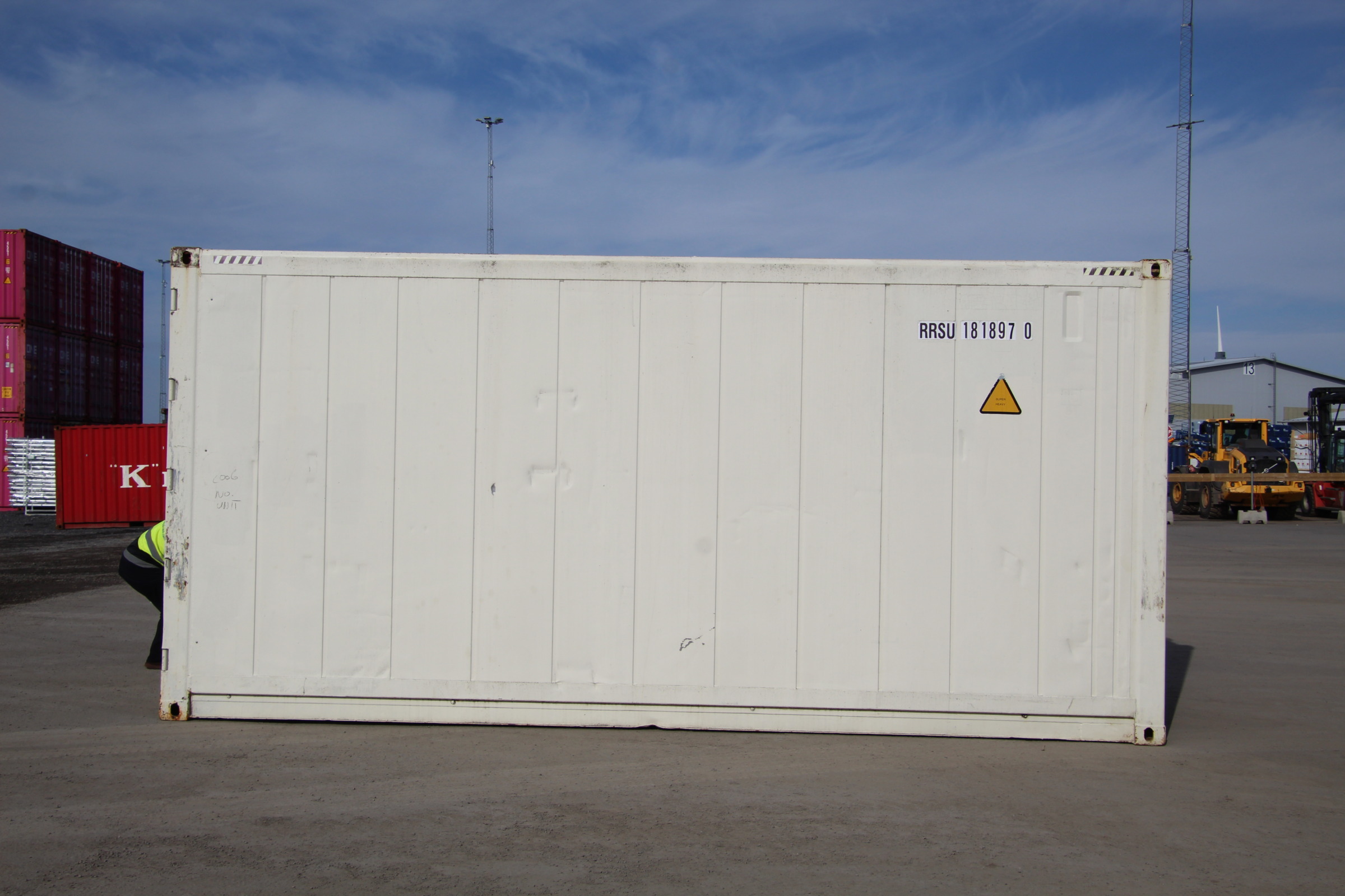 20′ HC eli 6 m korotettu kylmäkontti. Kontissa on oma 32A voimavirralla toimiva kylmäkoneistonsa sen toisessa päädyssä ja pariovet toisessa.