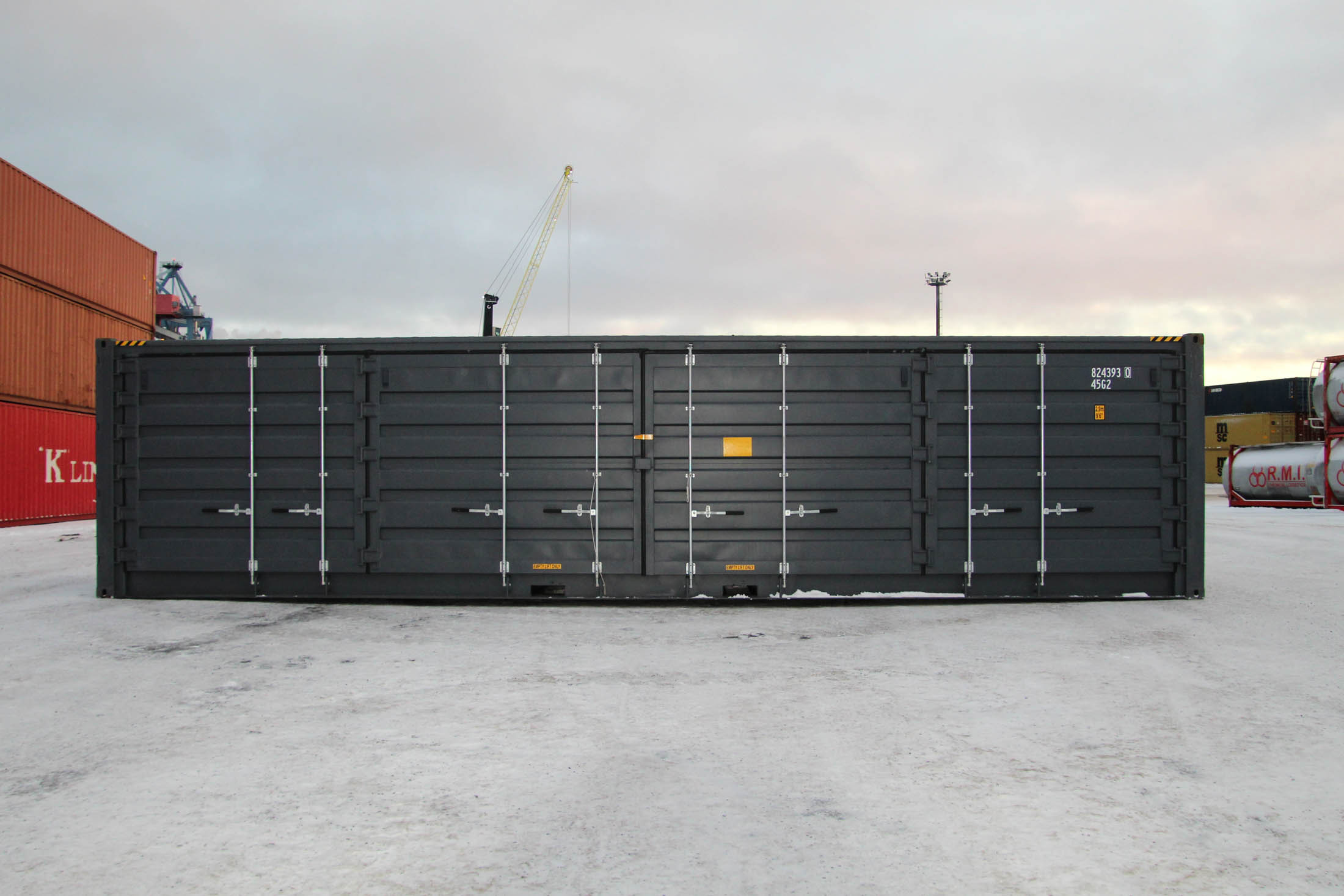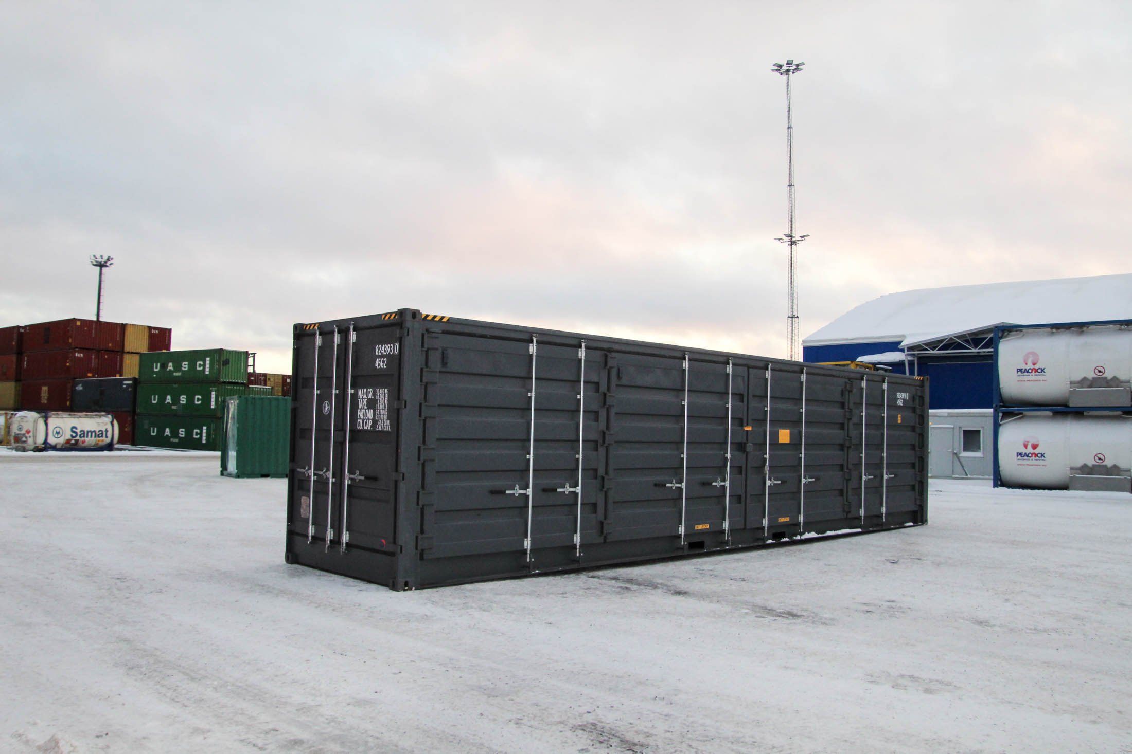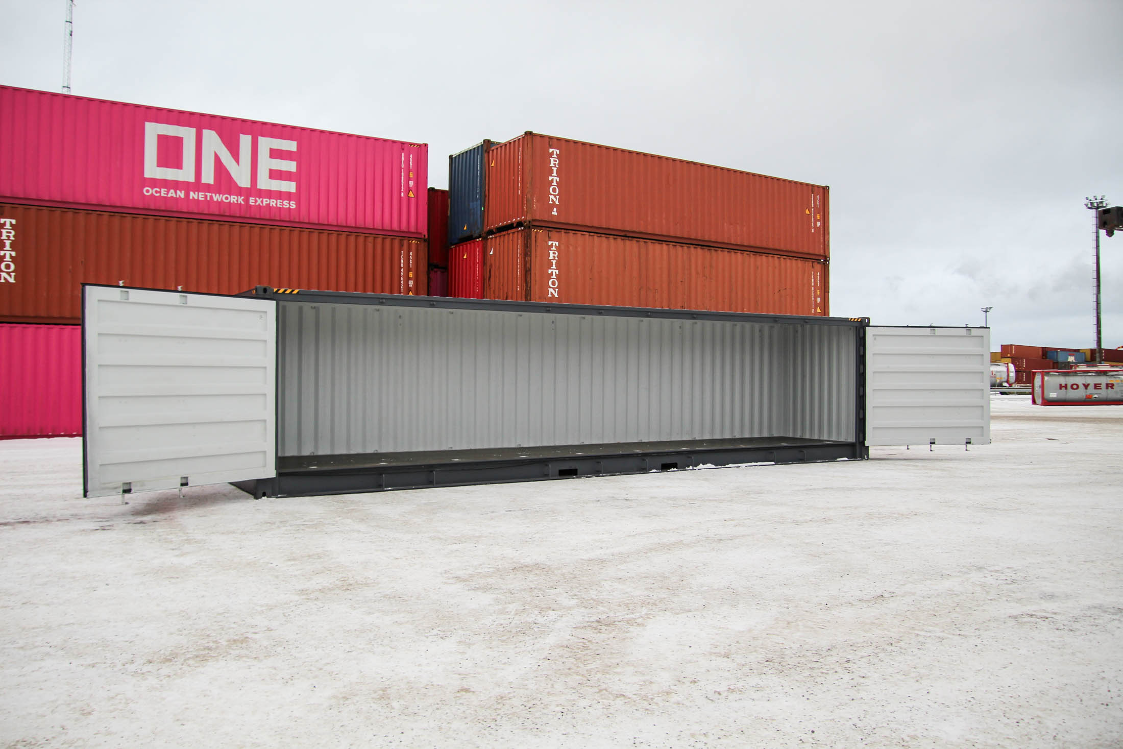 40′ (12 m) HC Open Side eli korotettu kylkiaukeava merikontti. Kontin yksi pitkä sivu on avattavissa ja päädyssä on pariovet. Erittäin käytännöllinen malli, kun tarvitset pitkän, helposti lastattavan ja nopeasti käyttöönotettavan tilaratkaisun.