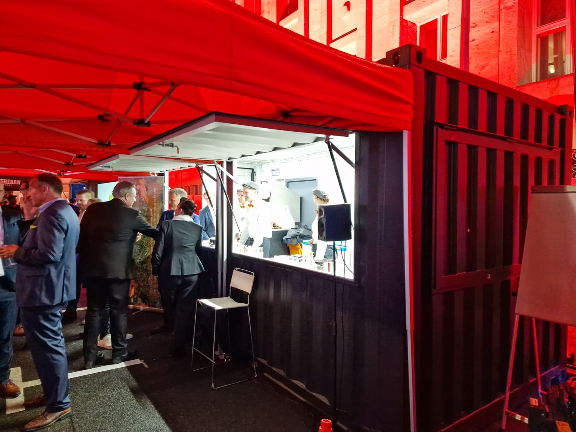 Tunnelmasta nauttimisen ja verkostoitumisen ohella Jesse, Raffe ja Matti pääsivät esittelemään Konttivuokrauksen ydinosaamista eli merikonttien erikoisvarusteluja konkreettisella tavalla. Rakentamamme baarikontti toimi nimittäin yhtenä ständeistä tapahtumassa. Jaoimme ständin STILL:in henkilökunnan kanssa ja haluammekin kiittää heitä hyvästä yhteistyöstä tapahtuman aikana.