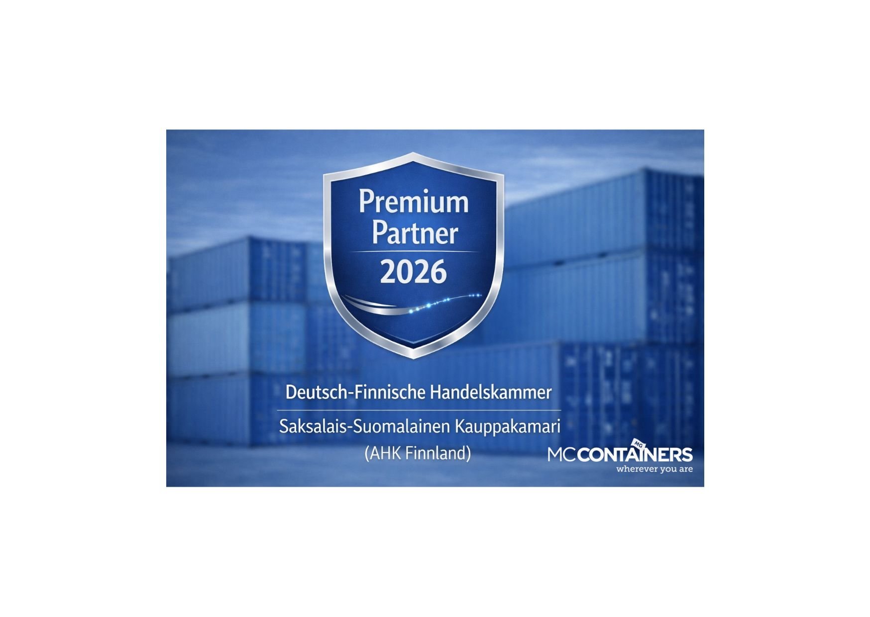 MC Containers on vuonna 2026 Saksalais-Suomalaisen Kauppakamarin (AHK Finnland) Premium Partner. Premium Partner -rooli vahvistaa kansainvälistä näkyvyyttämme ja verkostoamme sekä tukee yhteistyötä Saksan ja Suomen välillä.